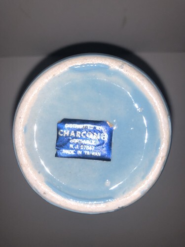 This vintage blue floral hand-painted pottery vase from Taiwan stands at 6 inches tall. Made from ceramic, this eclectic vase features a charming botanical theme with a colorful floral pattern hand-painted by the brand Charcon. Its unique and original design makes it a beautiful addition to any decor, showcasing intricate craftsmanship and a rustic charm that complements a variety of styles.