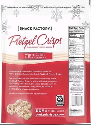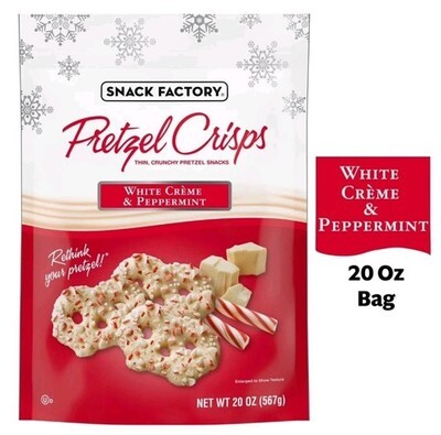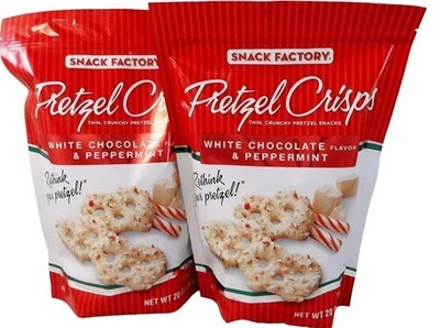 2 Packs Snack Factory Pretzel Crisps White Chocolate & Peppermint 20oz Each Pack