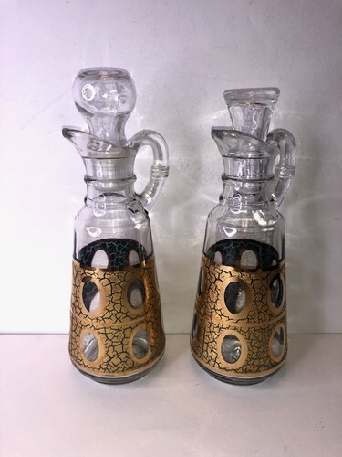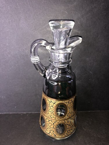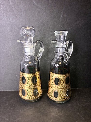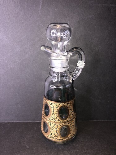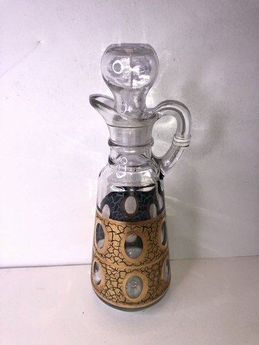 Vtg Georges Briard Anchor Hocking Gold Crackle Glass Cruet Oil Vinegar Decanter