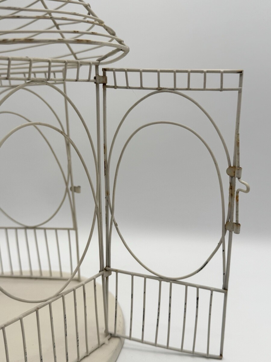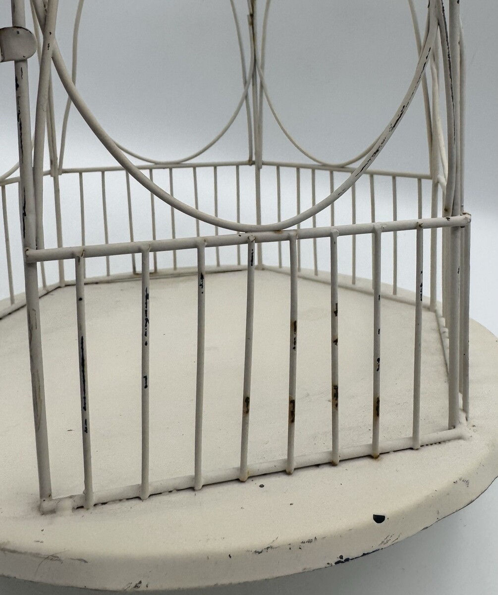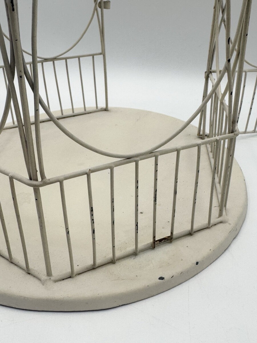 Vintage Wire Bird Cage Cream White Rustic 13" Decorative Lantern Rounded Metal