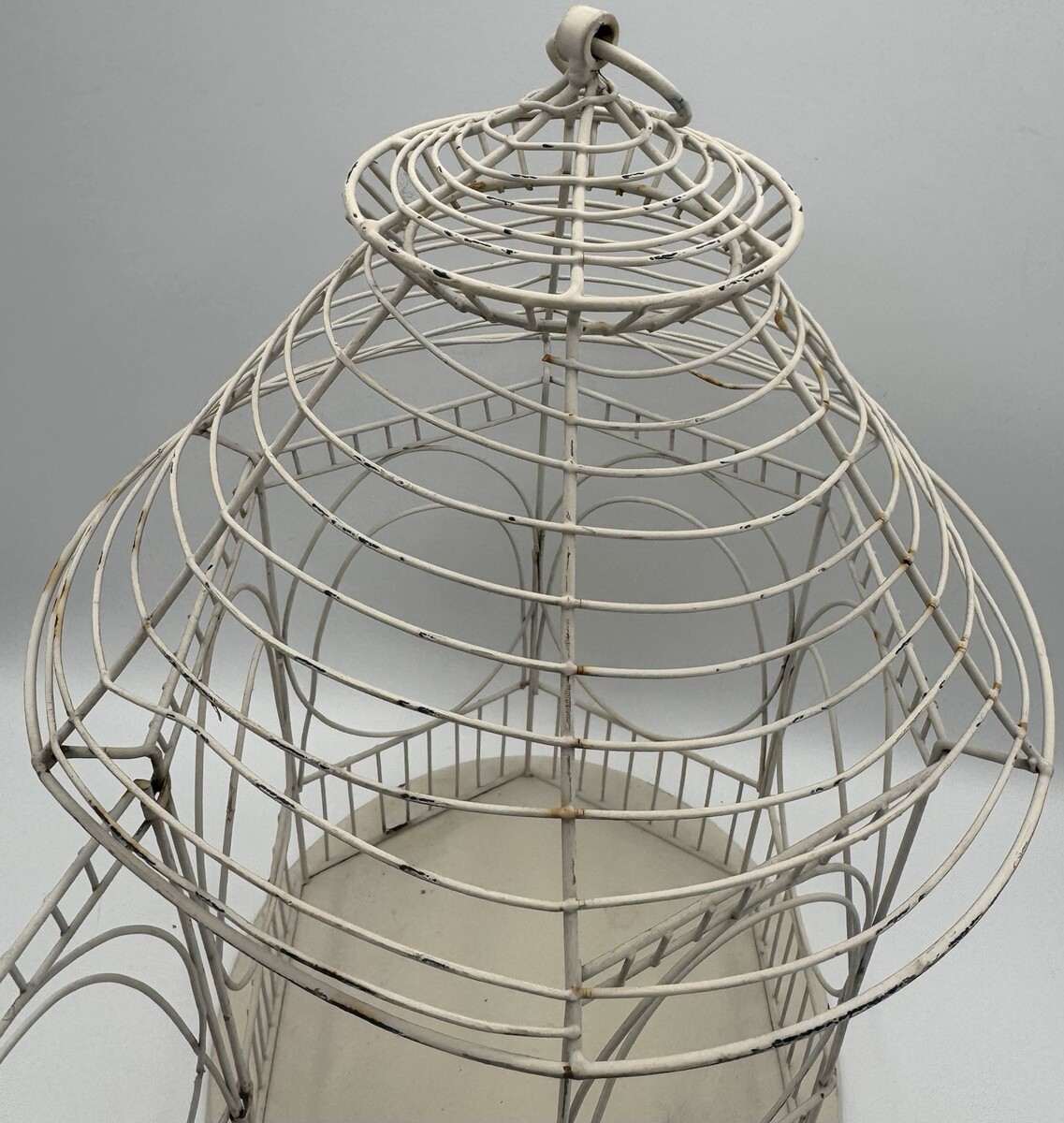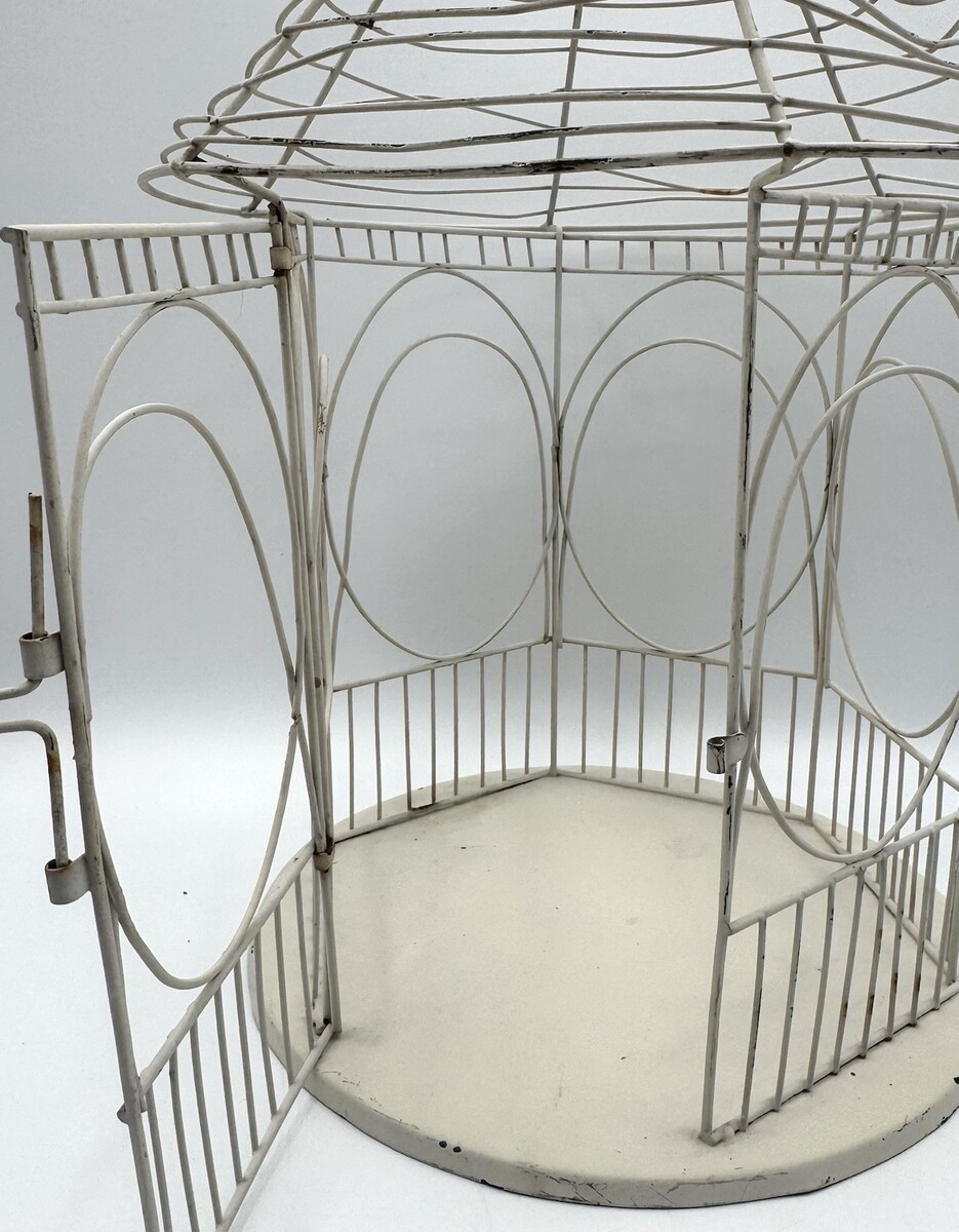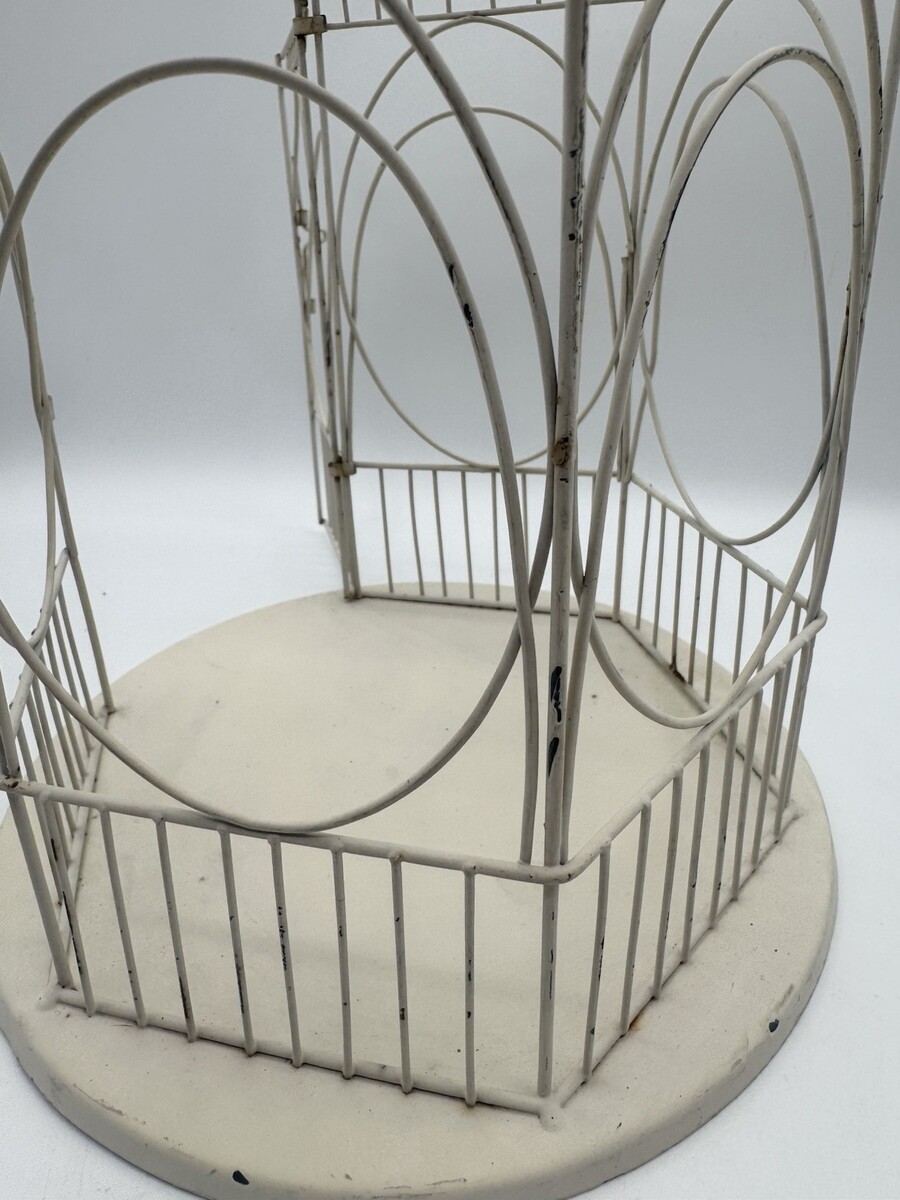Vintage Wire Bird Cage Cream White Rustic 13" Decorative Lantern Rounded Metal