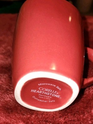 Corelle Hearthstone Stoneware Chili Red Coffe Mug Black Inside Square Top