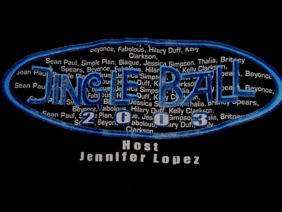 This is a very scarce, vintage concert tour t shirt entitled, "Jingle Ball 2003". Hosted by Jennifer Lopez. A terrific item for the fan or collector.