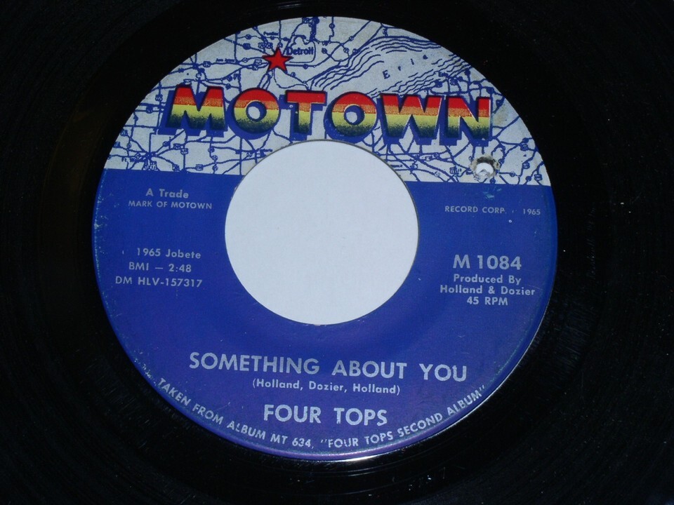 This is a vintage 45 rpm phonograph record by the Four Tops entitled, "Something About You". Flipside: "Darling, I Hum Our Song". Record label: Motown M1084