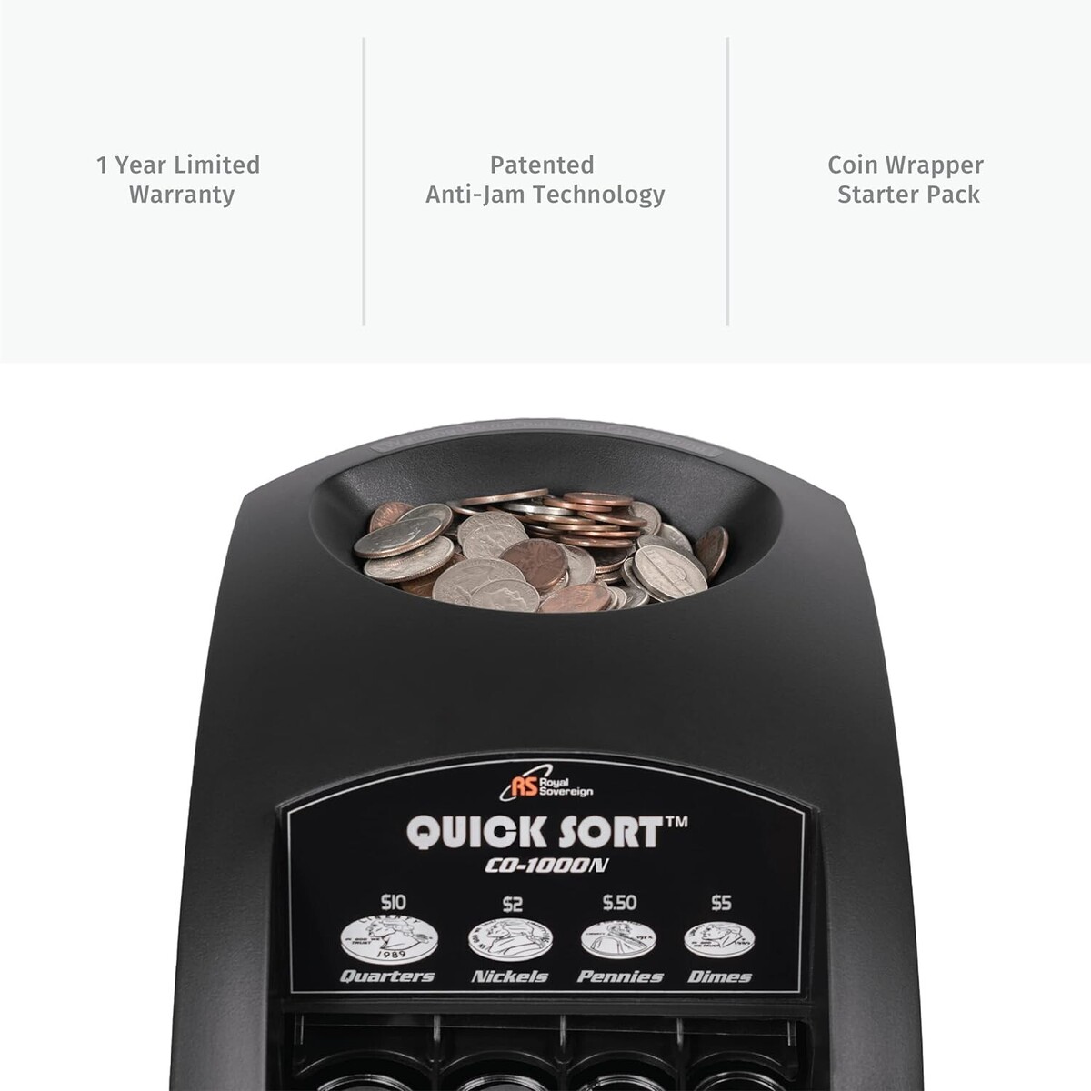 Hassle-Free Operation: Patented Anti-Jam Technology allows for precise internal sorting when counting coins