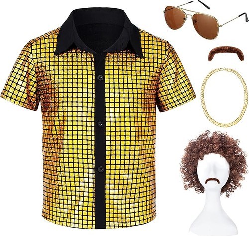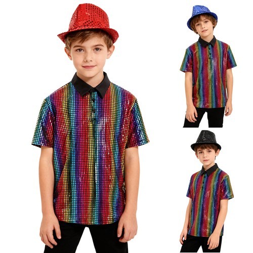 Get your little one ready to boogie down with this 70's inspired silver sequin disco shirt. Perfect for any fancy dress occasion, this shirt is made with high-quality materials and features a hilarious fashion brand. The shirt is designed with a unique style and theme of the 1970s, making it a standout piece in any collection.