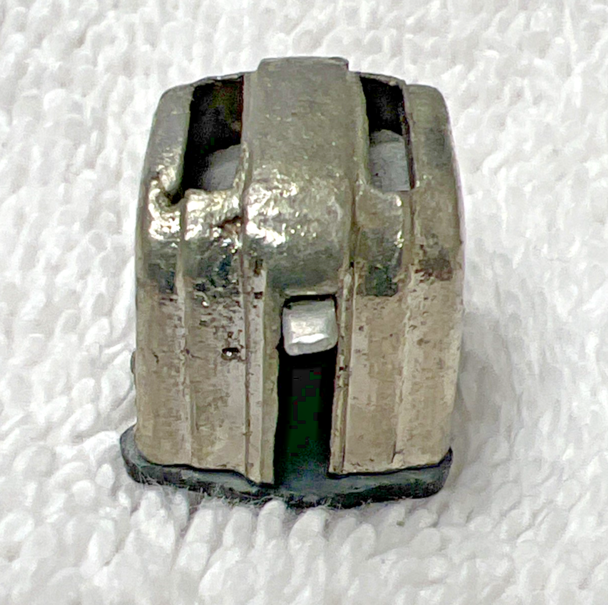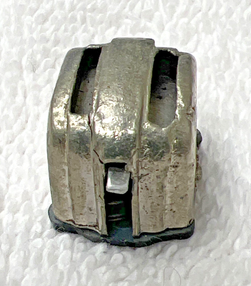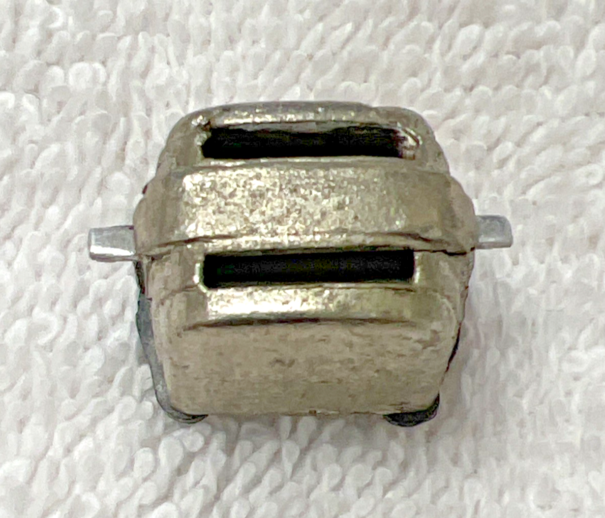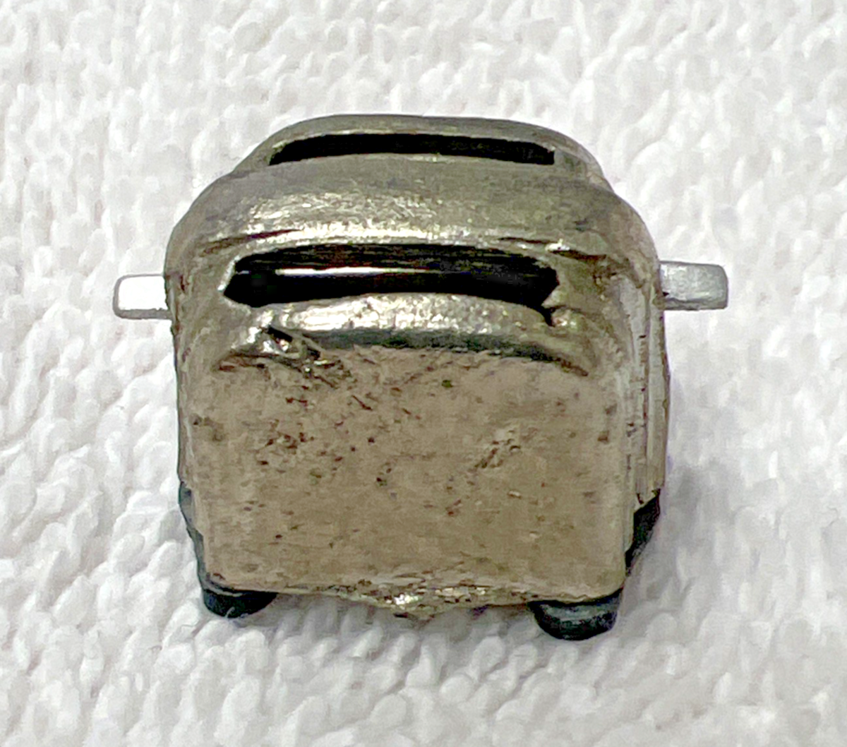 Vintage Dollhouse Miniature Silver Tone Metal MCM Mid-Century Style Toaster Lever Works measures approx. 5/8" wide and 7/8" long. Some signs of use/play/surface scratching, no damage and lever which on both sides moves up and down. See pictures.