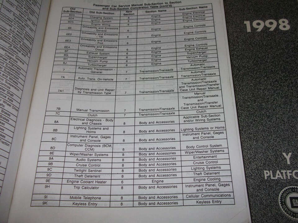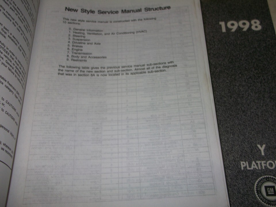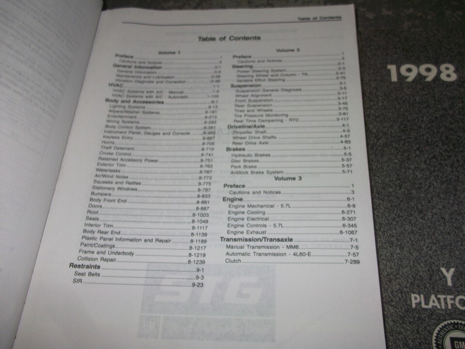 Book 1 includes general information/hvac/body accessories and restraints,book 2 includes the steering/suspension/driveline/axles and brakes, book 3 includes the engine and transmission/transaxle.