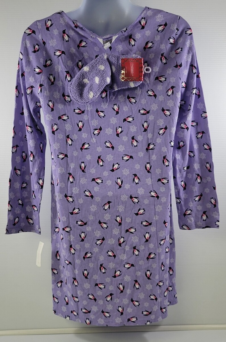 B) Charter Club Intimates Woman Pretty Penguin Sleepshirt and Socks Set Medium