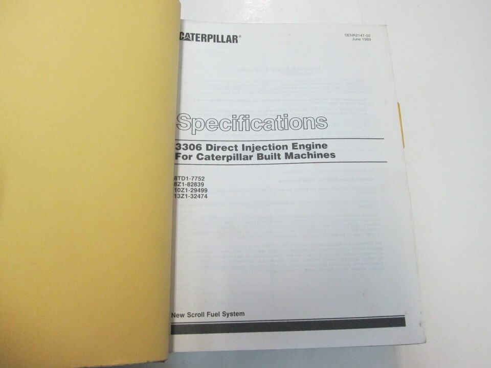 Caterpillar 3306 Direct Injection Engine For Caterpillar Built Machines Specifications Manual