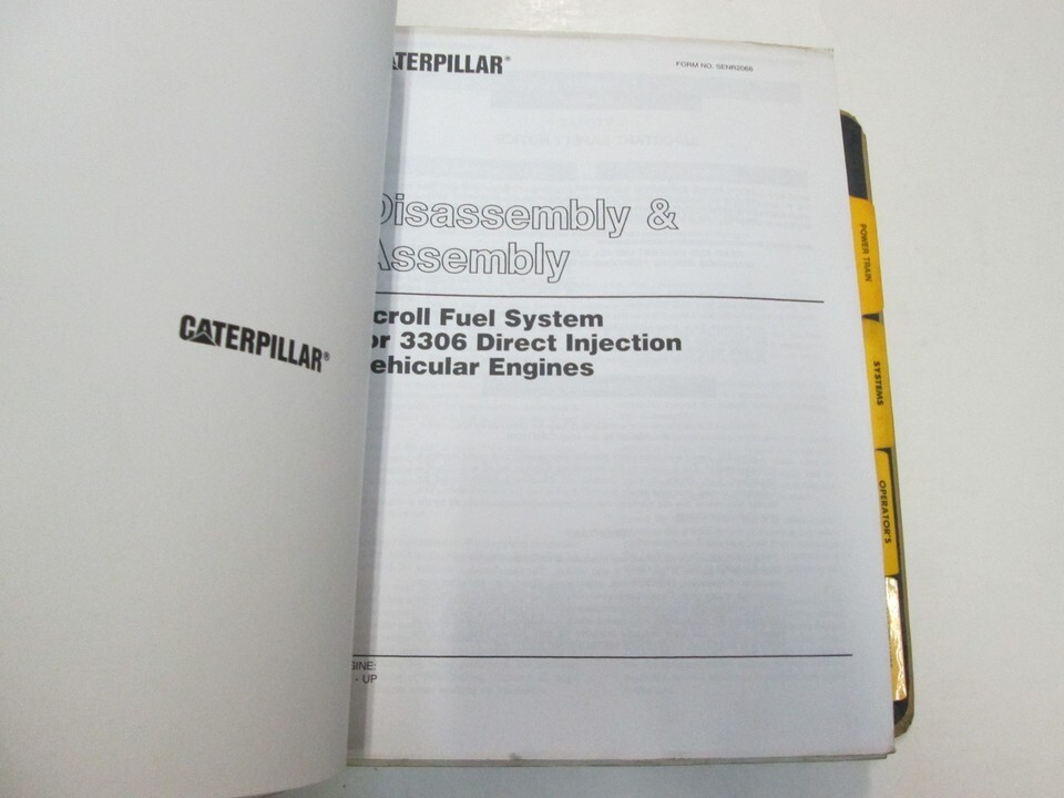Caterpillar Scroll Fuel System for 3306 Direct Injection Vehicular Engines Disassembly Assembly Manual