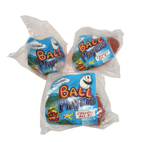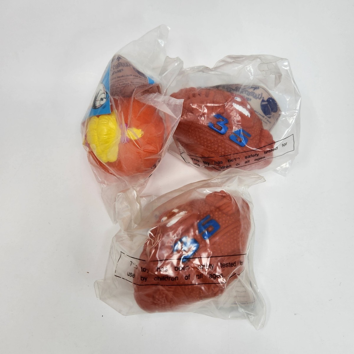 3 VINTAGE 1995 WENDY'S KIDS TOYS BALL PLAYERS FOOTBALL BASKETBALL W/ FACE NEW