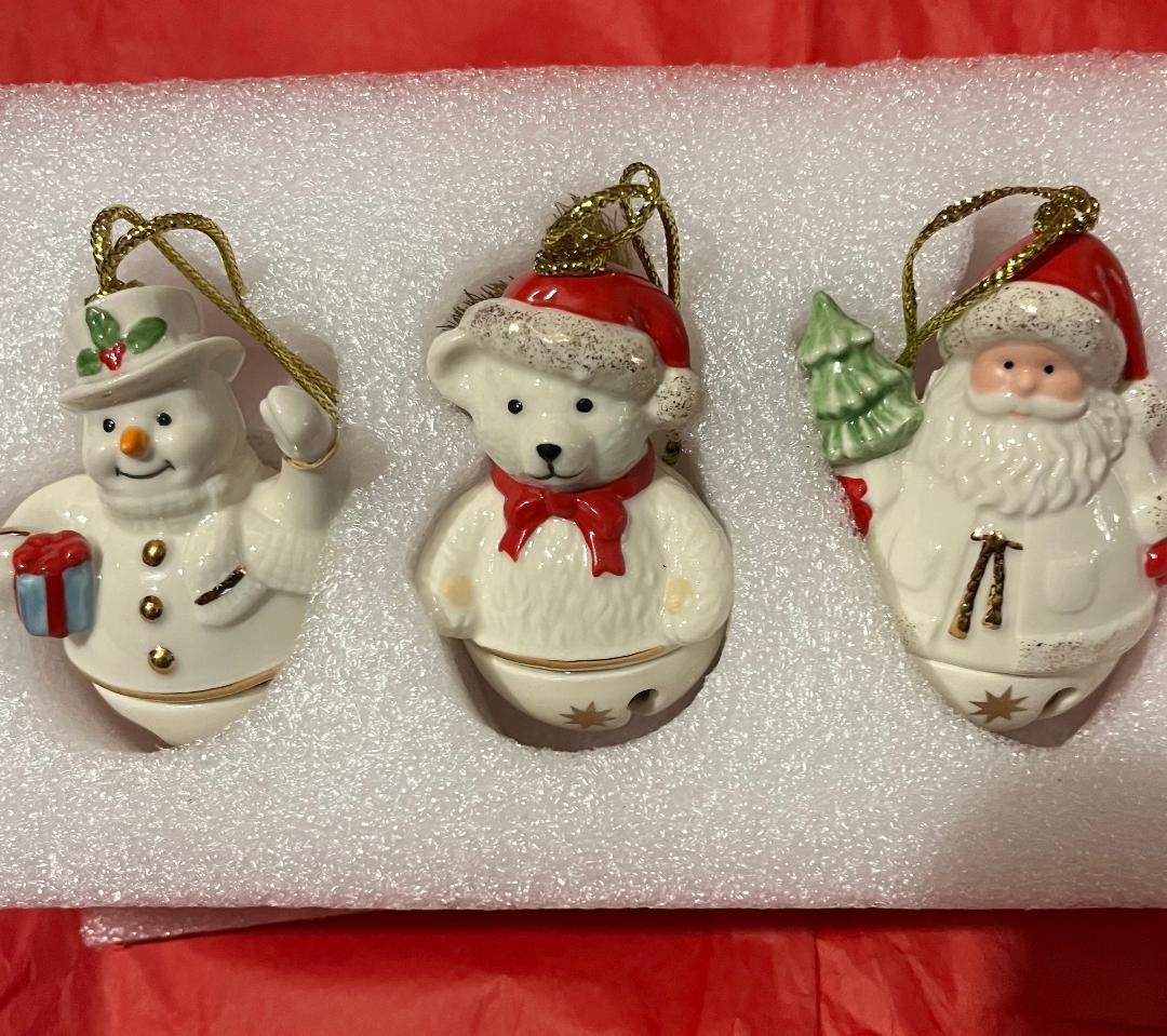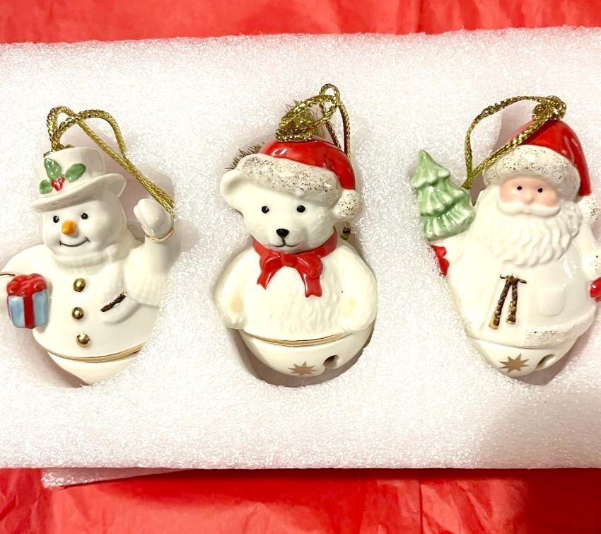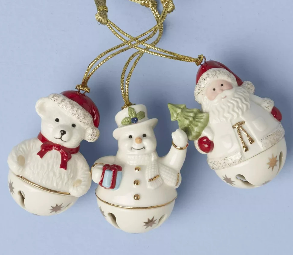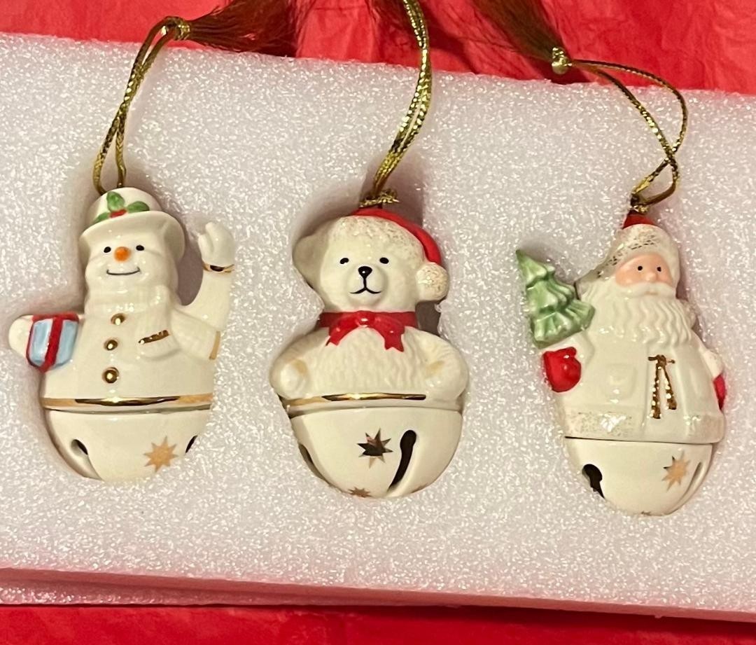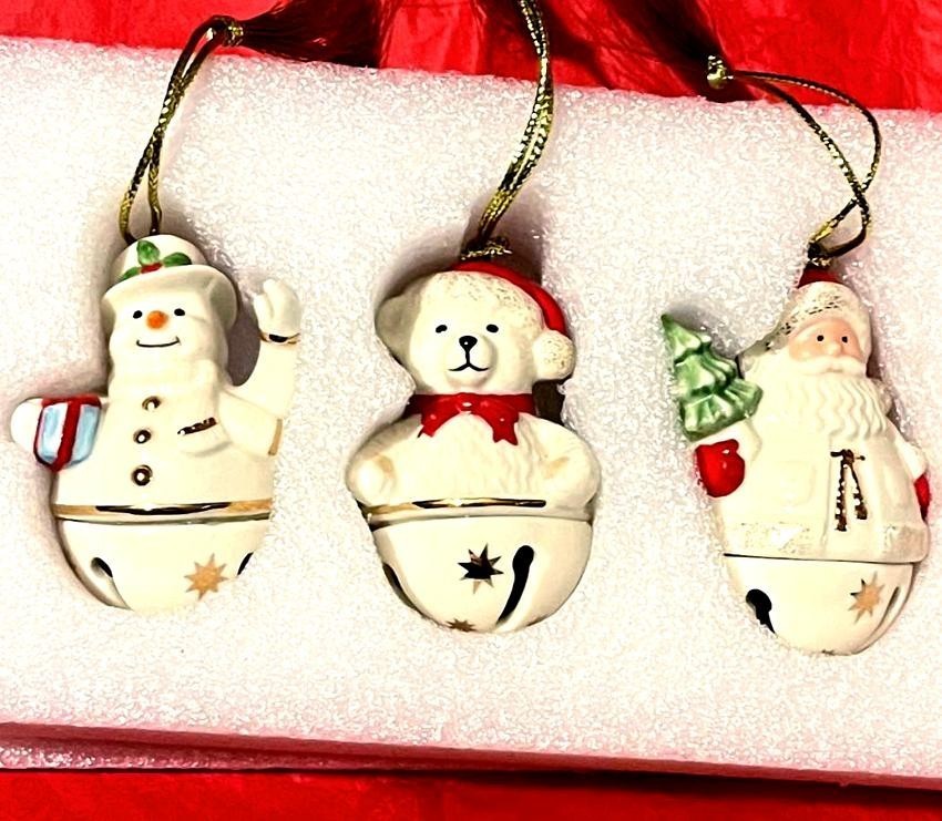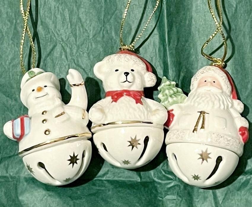 Lenox 2025 Jingle Bell Ornaments SET/3, Snowman, Santa Claus, Teddy Bear New