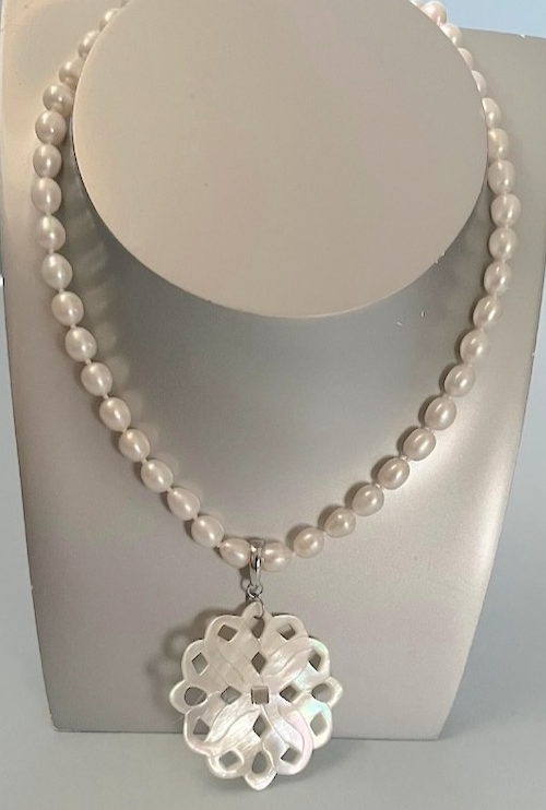Lenox Mother of Pearl Pierced Flower Pendant and similar items