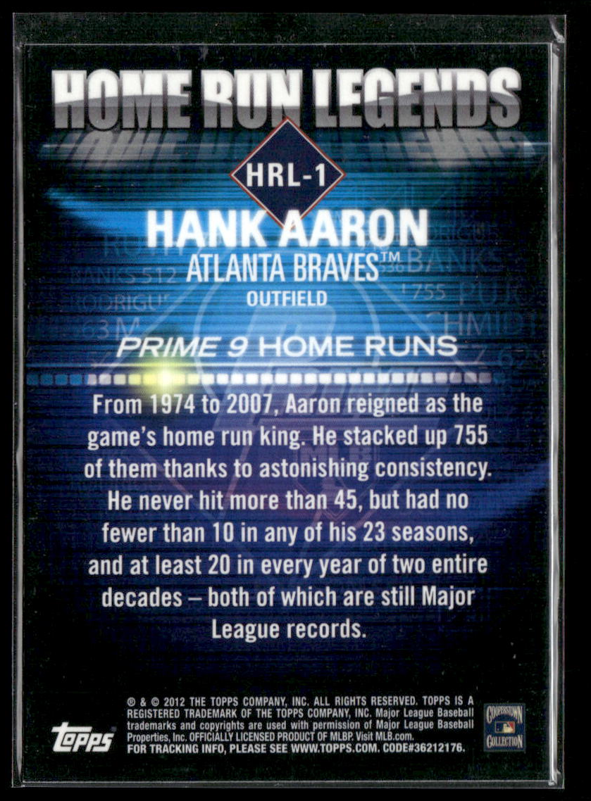 2012 Topps #HRL-1 Hank Aaron Prime Nine Home Run Legends $2.88 B3G1