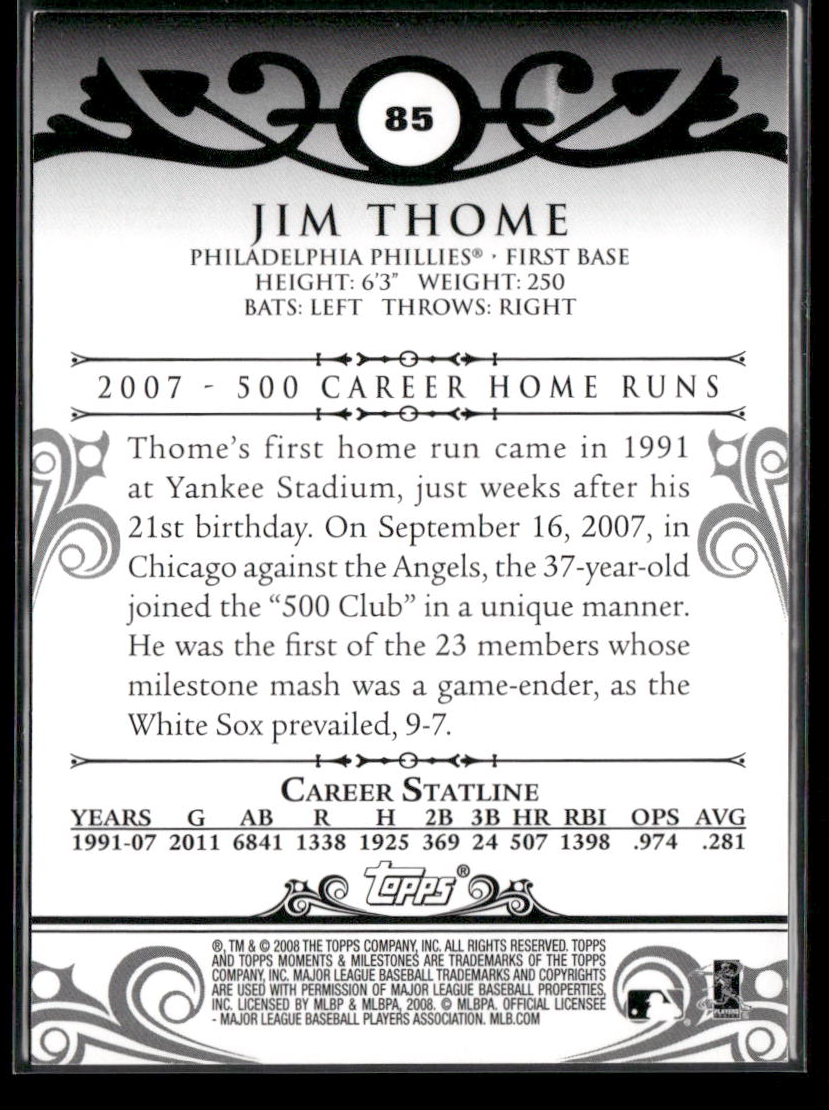 2008 Topps Moments & Milestones #85-412 Jim Thome #/150 $2.88 B3G1
