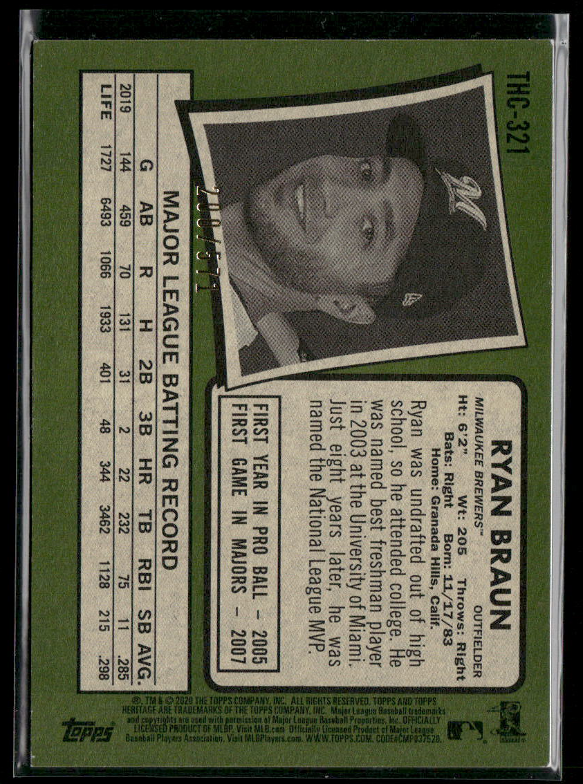 2020 Topps Heritage #THC-321 Ryan Braun Chrome Refractor #/571 $2 |