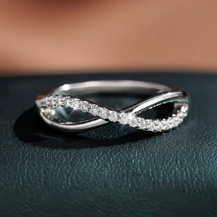 18K 925 Sterling Sliver Full Moissanite Infinity-8 Gemstone Ring (Size 4-9)