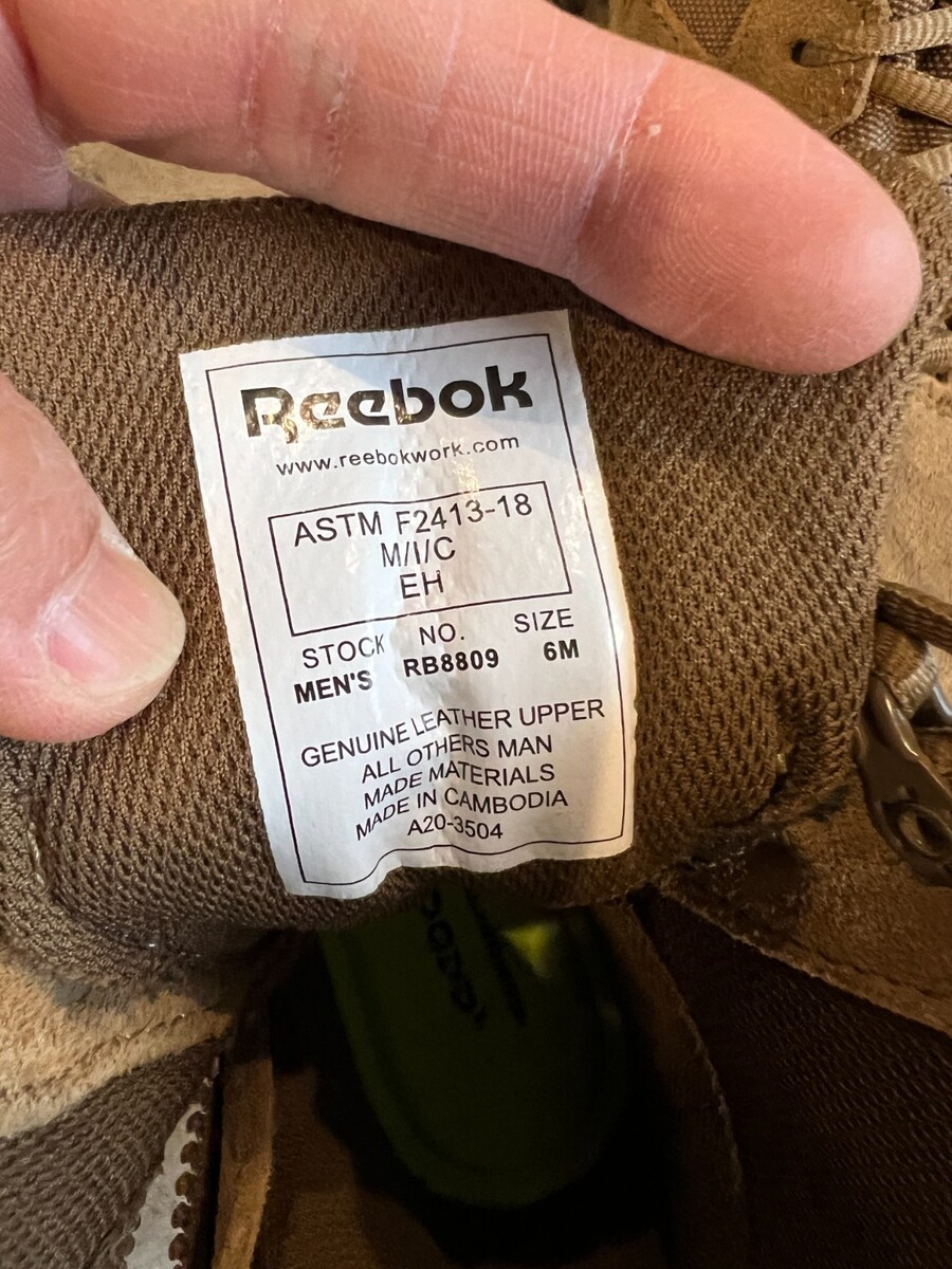 REEBOK SUBLITE CUSHION TACTICAL MEN'S 8" SIDE ZIPPER COYOTE BOOTS RB8809 - 6M.