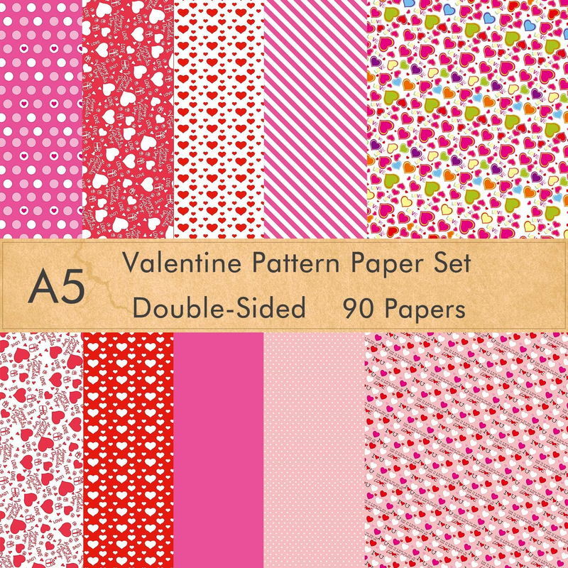 90 Sheets Valentine Pattern Paper Set, 14 X 21Cm Decorative PaperSupplie 10 Designs
