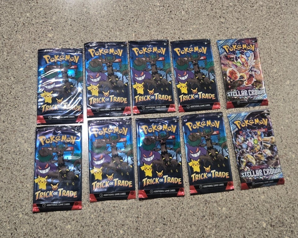 8 Pokémon Trick Or Trade and 2 Stellar Crown Packs Both Unopened Factory Sealed