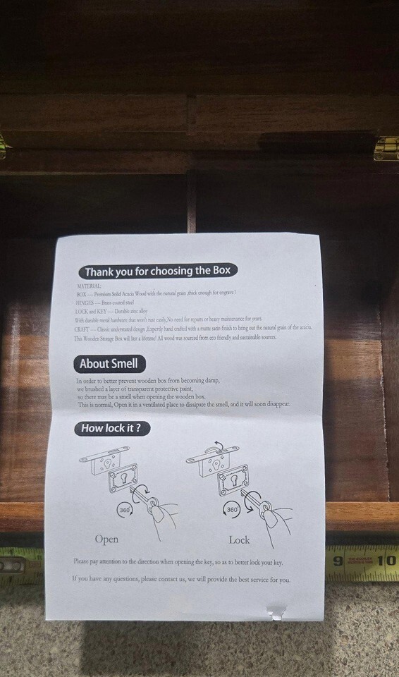 Lockable Wooden Acacia Jewelry Storage Box with a Hinged Lid and a Brass Latch
