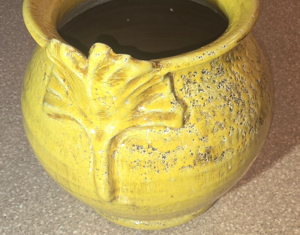 Large French Provincial Terra Cotta Yellow Glazed Confit Pot