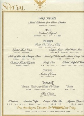 Pan American Maxims of Paris Presidents Special Menu Clipper Ship Young America