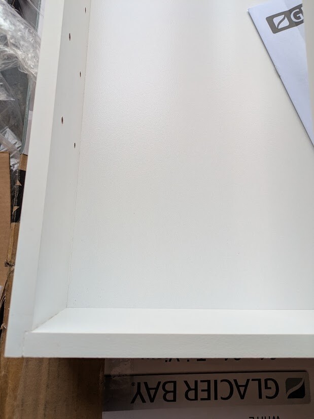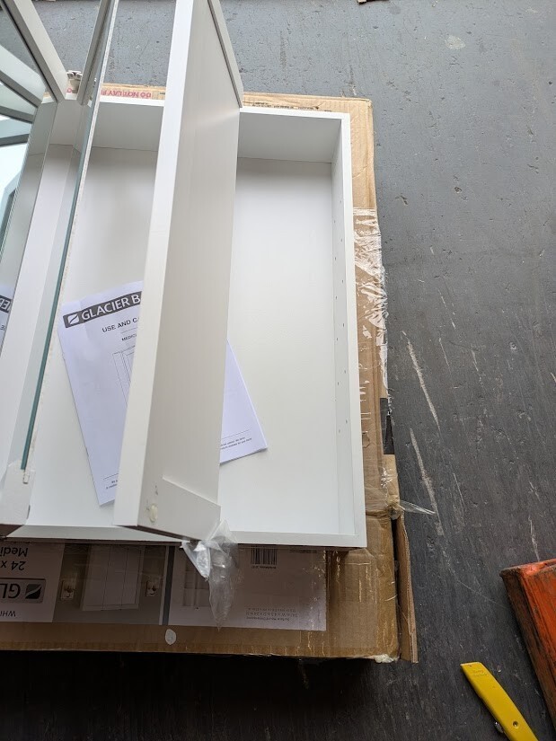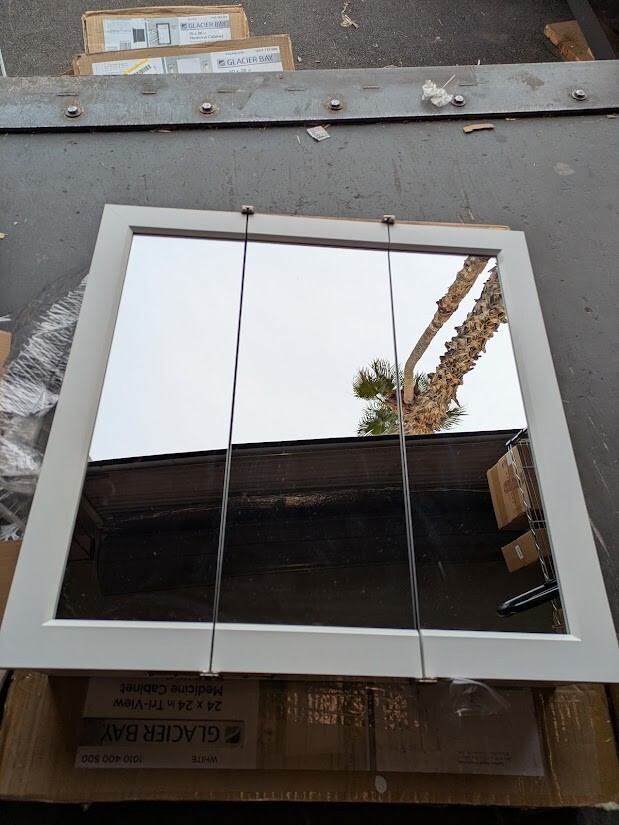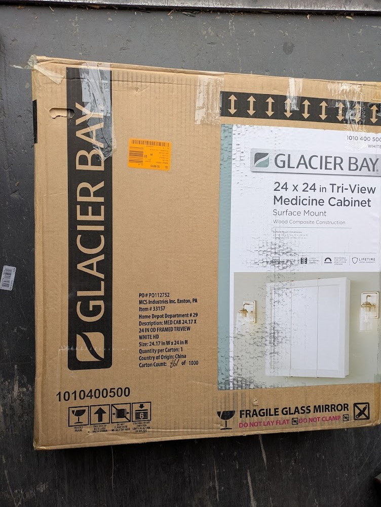 The Glacier Bay 24.17 in. W x 24.05 in. H x 4.58 in. D white shaker framed surface-mount tri-view bathroom medicine cabinet is a perfect complement to any bathroom or style. The tri-view mirror offers multiple viewing angles for added functionality. Includes 2 adjustable interior shelves to give you flexible storage space. Double shelf pegs enable you to customize your space quick and easy. Cabinet installation is reversible for middle door to open left of right based on preference. Wood composite construction provides exceptional durability and strength. Fully assembled for your convenience.