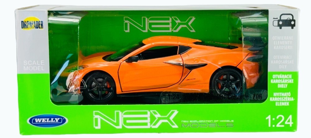 2023 Chevrolet Corvette Z06 1/24 Scale Diecast Model by Welly - ORANGE w/ BOX