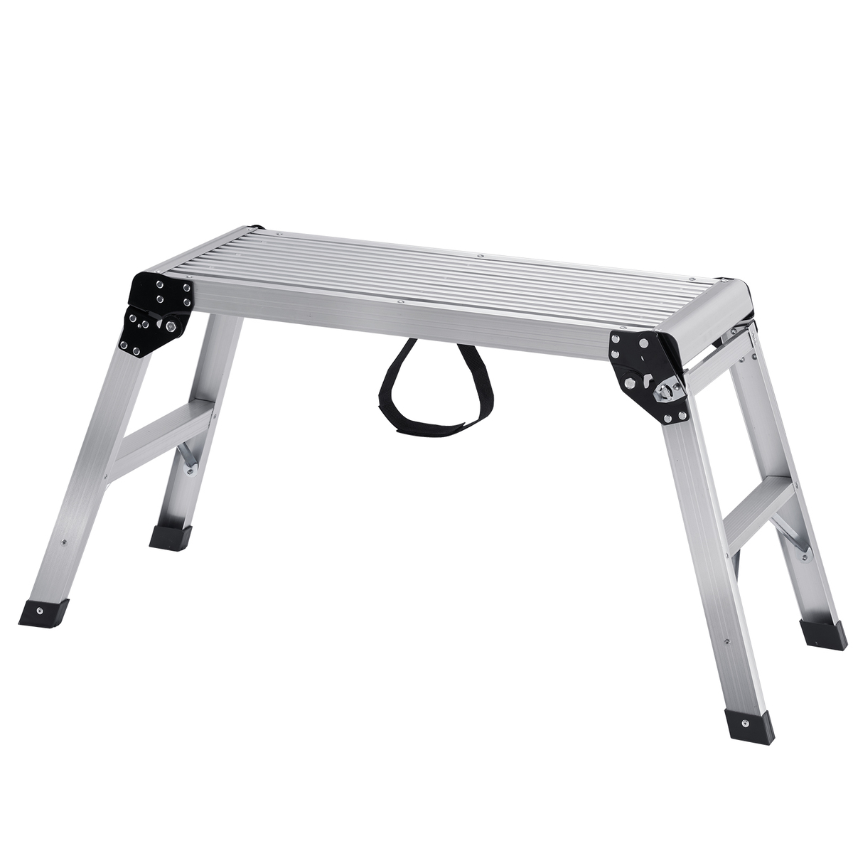 Rock-Solid Stability: Our aluminum platformโs surface offers excellent traction, reducing the risk of slips and falls. Four legs covered with non-slip plastic feet enhances stability and provides strong support to prevent any unwanted movement or swaying. This design ensures your security, even when used in rainy conditions.