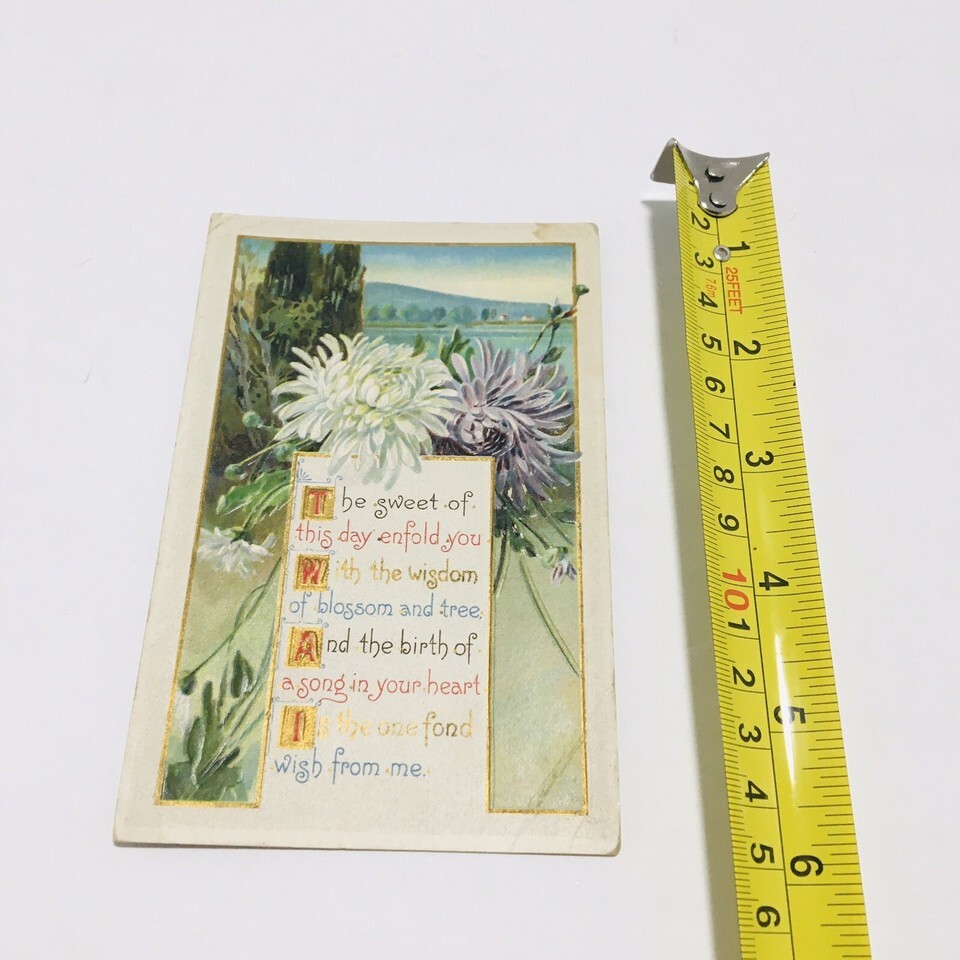 Antique 1913 A Joyous Post Card Flowers Embossed Lake Trees Flowers Beautiful Scenery. No Stamp but shown as posted.