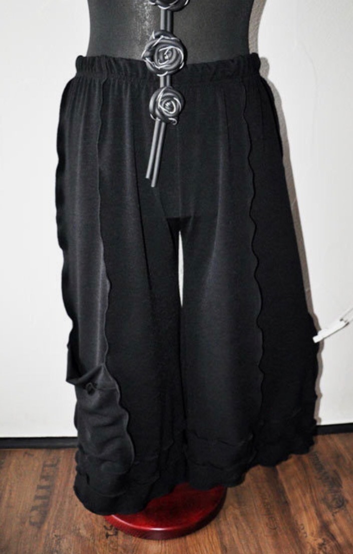 Myo-Lagenlook Refined Jersey Marlene Trousers Black Wavy Seams XXL, XXXL