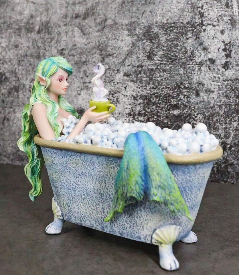 Amy Brown Aquamarine Pretty Mermaid Relaxing And Bubble Bathing in Tub Figurine