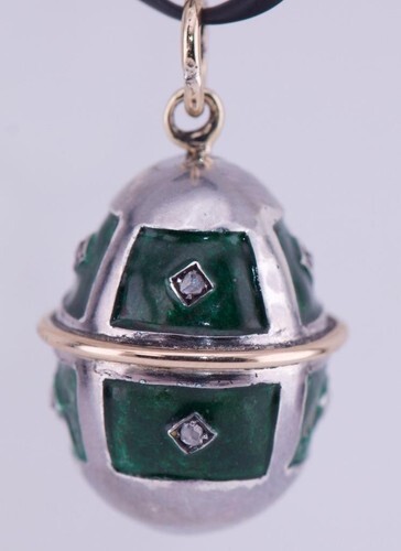 Argent Russe Fait a la Main Faberge ?uf Pendentif #PD-011-122-2