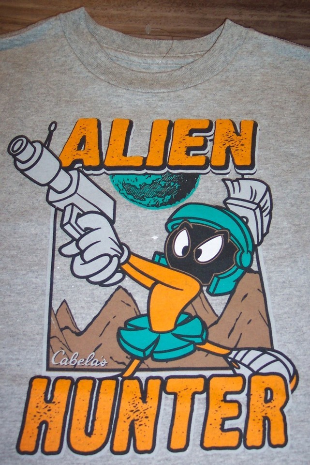 KIDS CHILDREN'S MARVIN THE MARTIAN Alien Hunter CABELA'S T-shirt SMALL NEW
