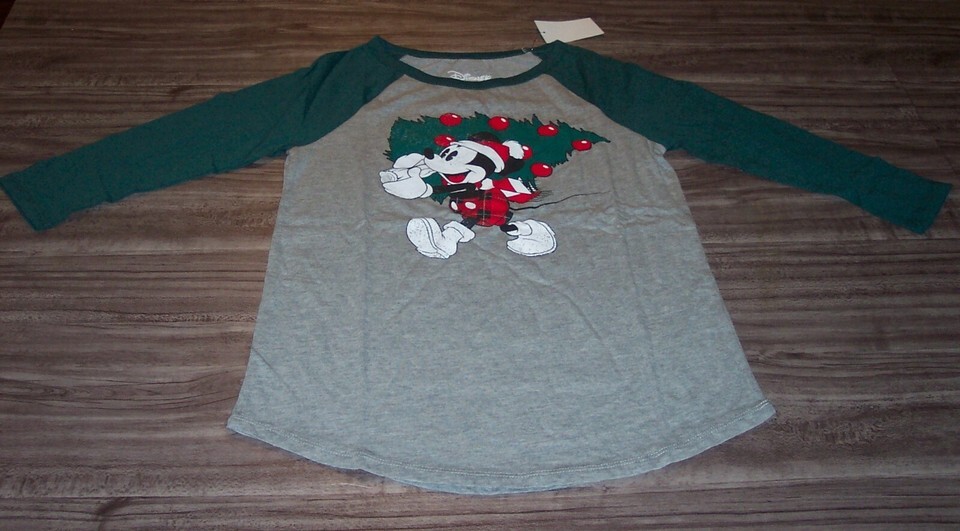 This is a VINTAGE STYLE Women's TEEN Walt Disney MICKEY MOUSE in Santa Hat with CHRISTMAS TREE Long Sleeve T-shirt. It is a size SMALL and it is NEW with the tag. It is 17 inches from armpit to armpit and 25 inches in length. It has the 70's style 3/4 length sleeves. The print is made to look vintage. Combine auctions to save on shipping. AG