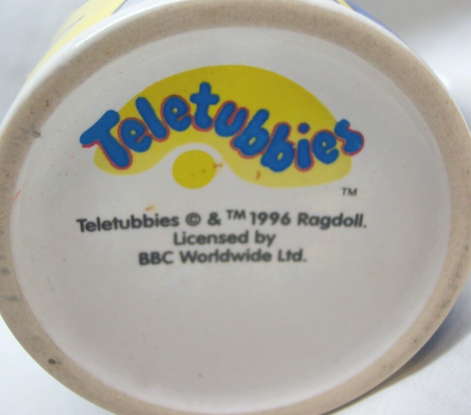 This is a Vintage 1998 TELETUBBIES Yellow Laa Laa 3" Children's Ceramic MUG Cup. It is in great condition. It is CLEAN! No Chips, Cracks or Defects. Made by BBC Worldwide. It is 3 inches tall and 2 1/2 inches round. Cute Children's size mug. Combine auctions to save on shipping. Please contact me if you need to make other payment arrangements. AG