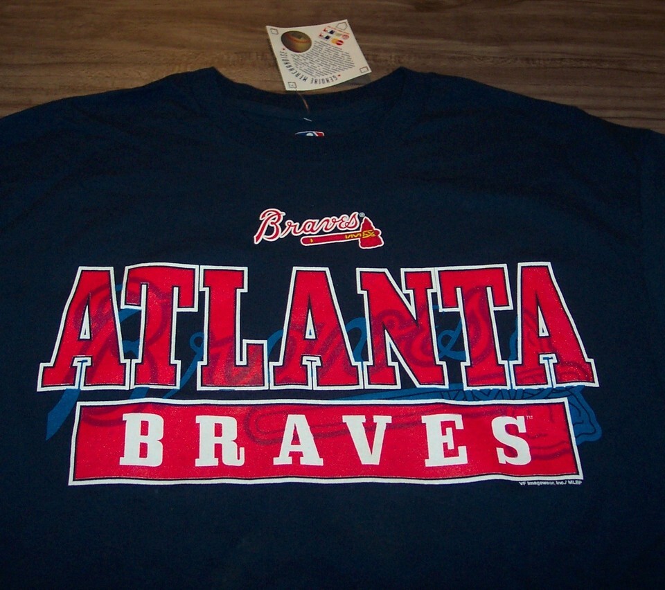 This is a ATLANTA BRAVES BASEBALL T-shirt. It is a size XL, and it is NEW with the tag. It is 24 inches from armpit to armpit and 31 inches in length. It is an official Genuine MLB Merchandise Shirt. 100% Cotton. Combine auctions to save on shipping. D3AG o