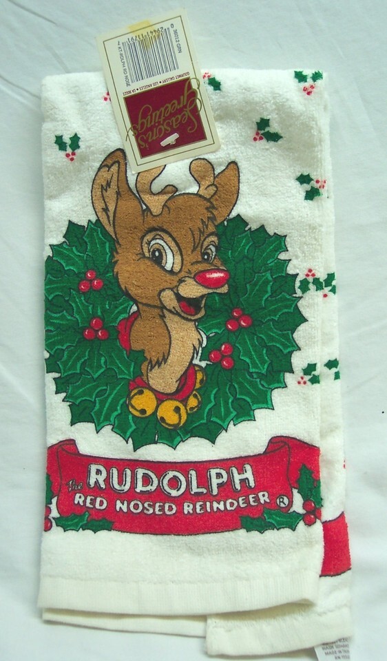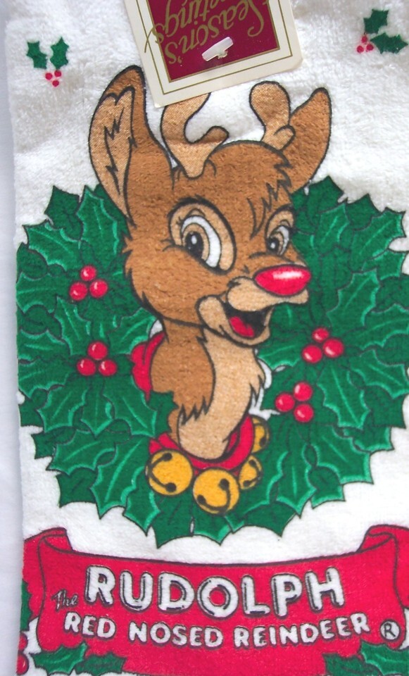 Vintage 1989 RUDOLPH THE RED NOSED REINDEER Kitchen Towel NEW 1980's