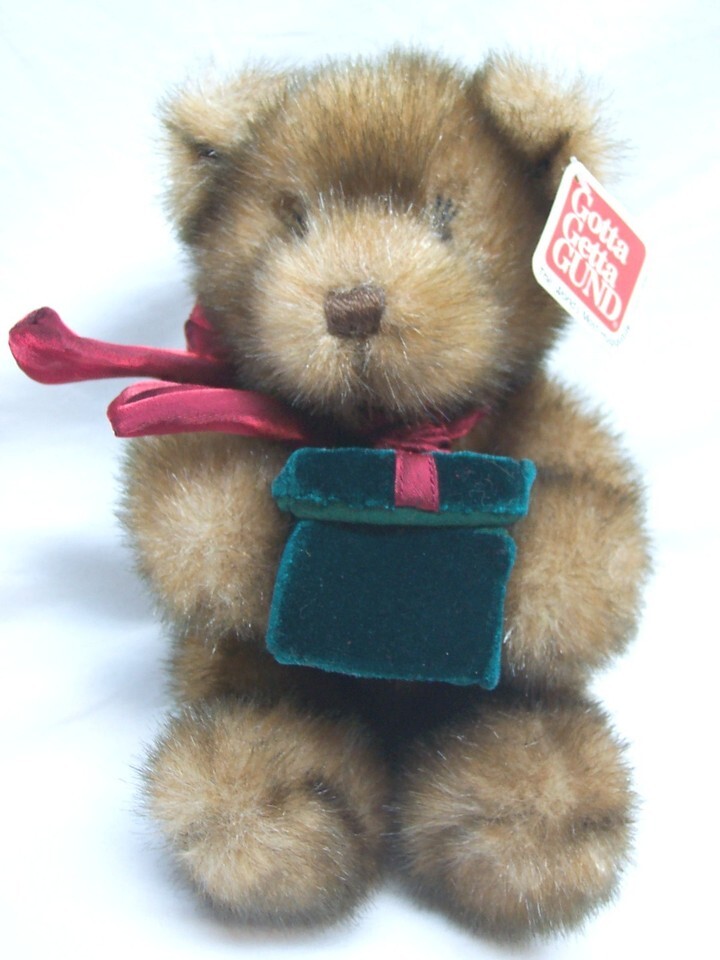 This is a VINTAGE MERRIE HOLLYDAY TEDDY BEAR W/ GIFT BOX Plush Stuffed Animal Toy. Made by GUND. It is 6 inches tall in sitting position. It is NEW with the tag. The little box actually opens and can hold something small like jewelry. It is SOFT CLEAN. There are No tears, Stains or Defects. Combine auctions to save on shipping. Please contact me if you need to make other payment arrangements. EAG o