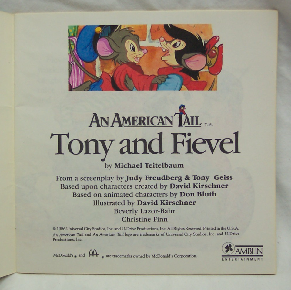 VINTAGE 1986 AN AMERICAN TAIL Tony and Fievel Children's Book Mcdonald's