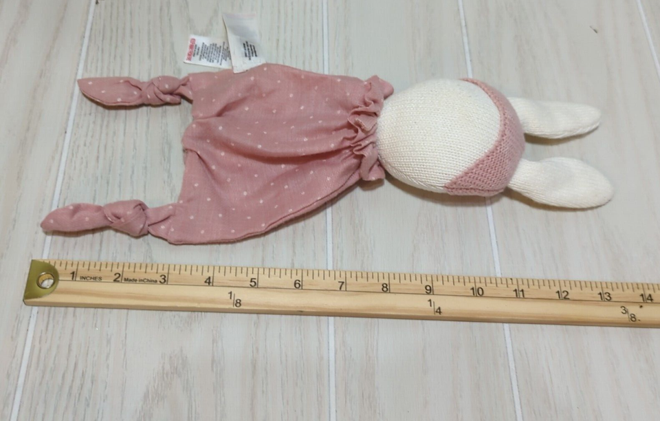 Knit sleeping bunny rabbit pink hat dot fabric knots security blanket baby lovey