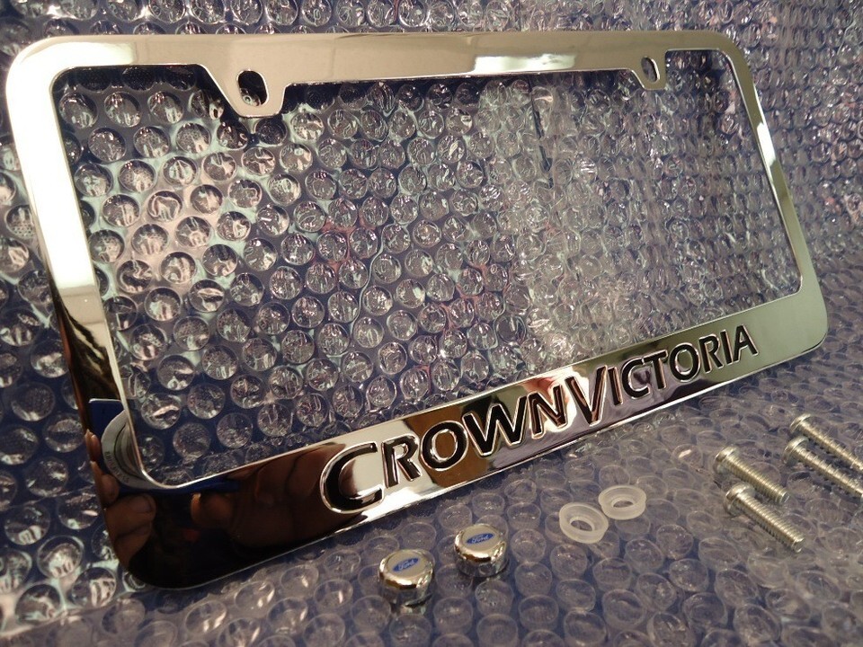 Fits Ford Crown Victoria Vic Chrome Metal License Plate Frame w/ Screw Caps