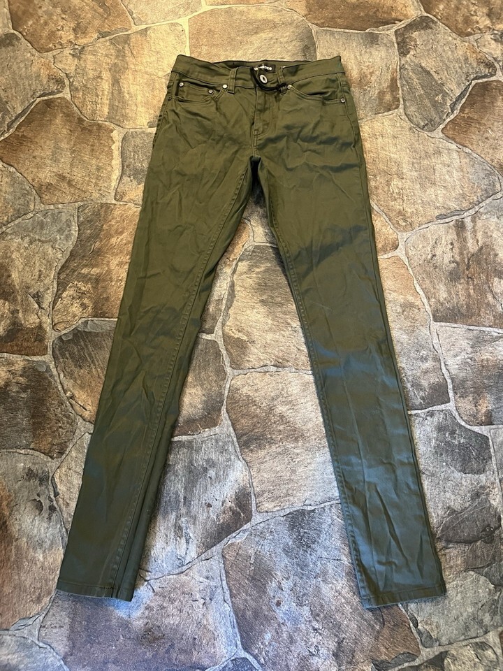 Serenade Mens Fitted Skinny Tapered Army Green Denim Jeans!(28x32). Shipped with USPS Ground Advantage.