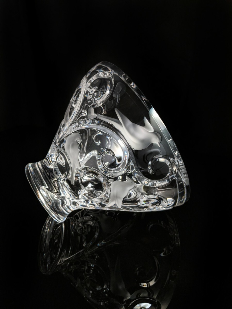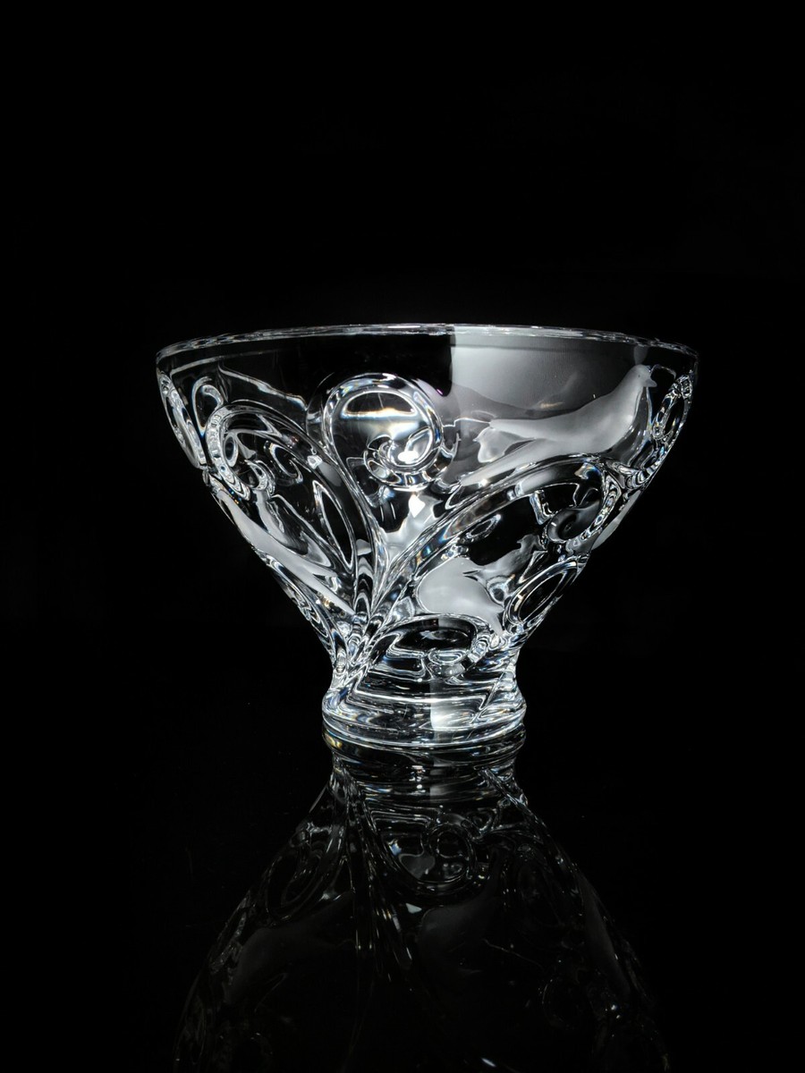 The Lalique Crystal Verone Bowl is a stunning round bowl with a high sheen finish and a clear color. This antique piece, made in France in 2008, features a French culture-inspired design with an Americana style. With a diameter of 11 inches and a height of 7.5 inches, this bowl is perfect for all occasions and is a unique addition to any collection. Hand wash only to maintain its exquisite crystal material and intricate Verone pattern design. A true one-piece franchise by Lalique, this bowl is a timeless piece for the late 20th century era.