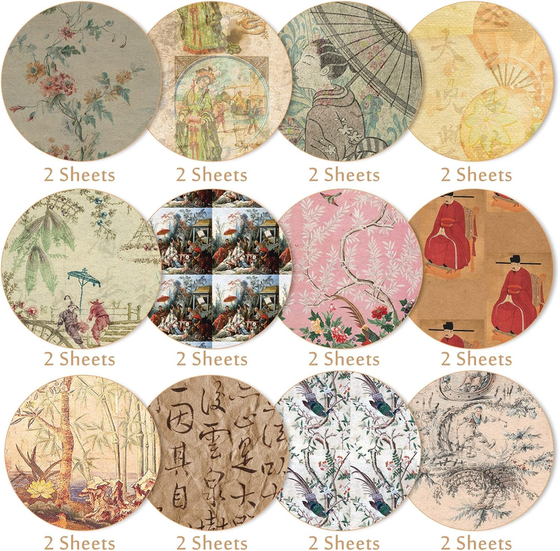 What You Will Get - 24 sheets Chinoiserie patterned paper in 12 different designs, each design has 2 sheets, sufficient to meet your needs for art crafts, and you can share with your friends to DIY, full of fun.