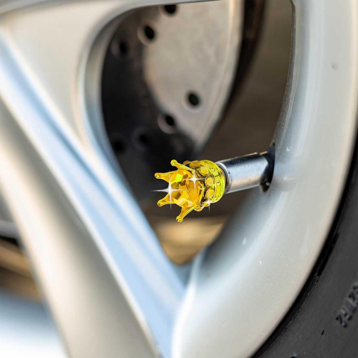 Give your wheels the royal treatment with these Gold Crown Valve Stem Caps from TireCapKings. Each order includes a complete set of four caps, so you’ll have enough for every tire on your car, truck, SUV, motorcycle, or bicycle. No confusion—one order equals four matching gold crown caps.