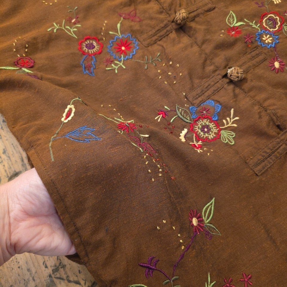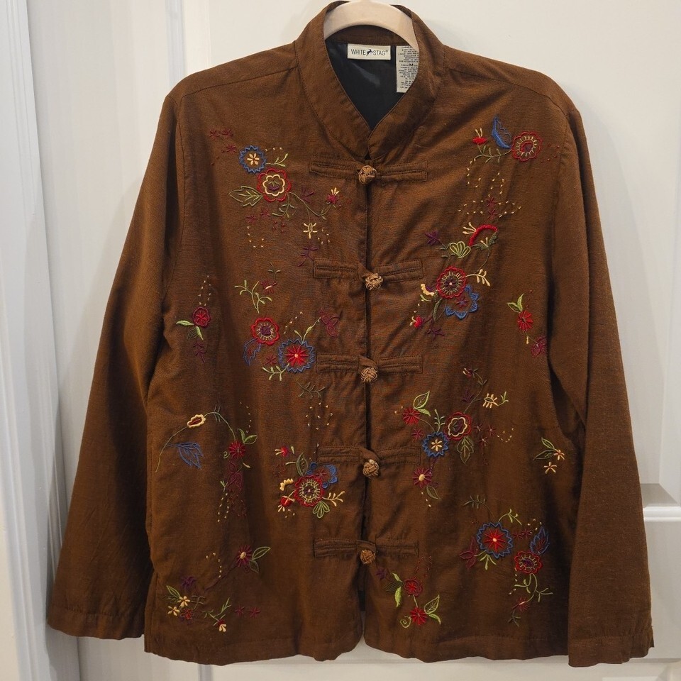 WHITE STAG Vintage Boho Brown Embroidered Jacket Sz M Asian Inspired Fall Jacket