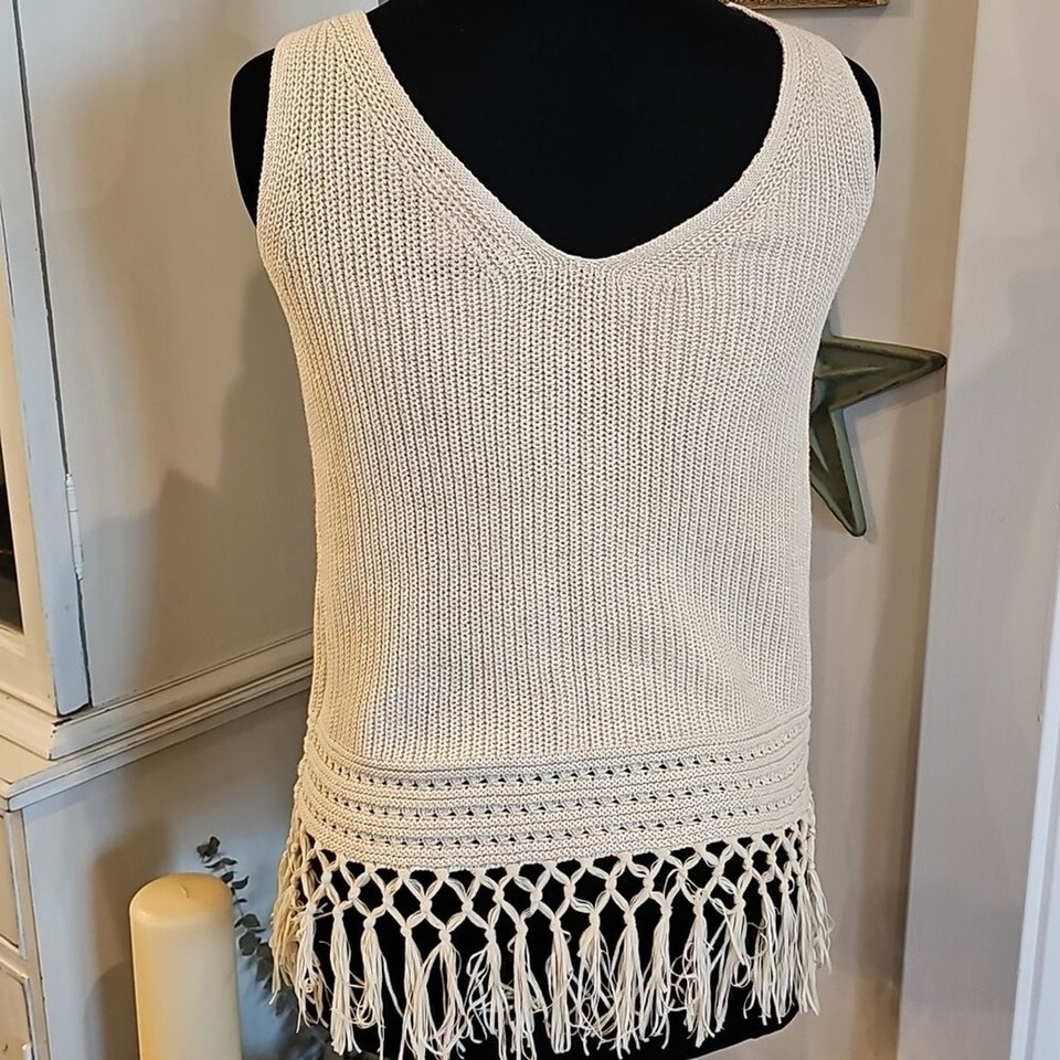 LILLY PULITZER Dulce Cream Fringed Sweater Tank Sz XS Coastal Cowgirl Festival